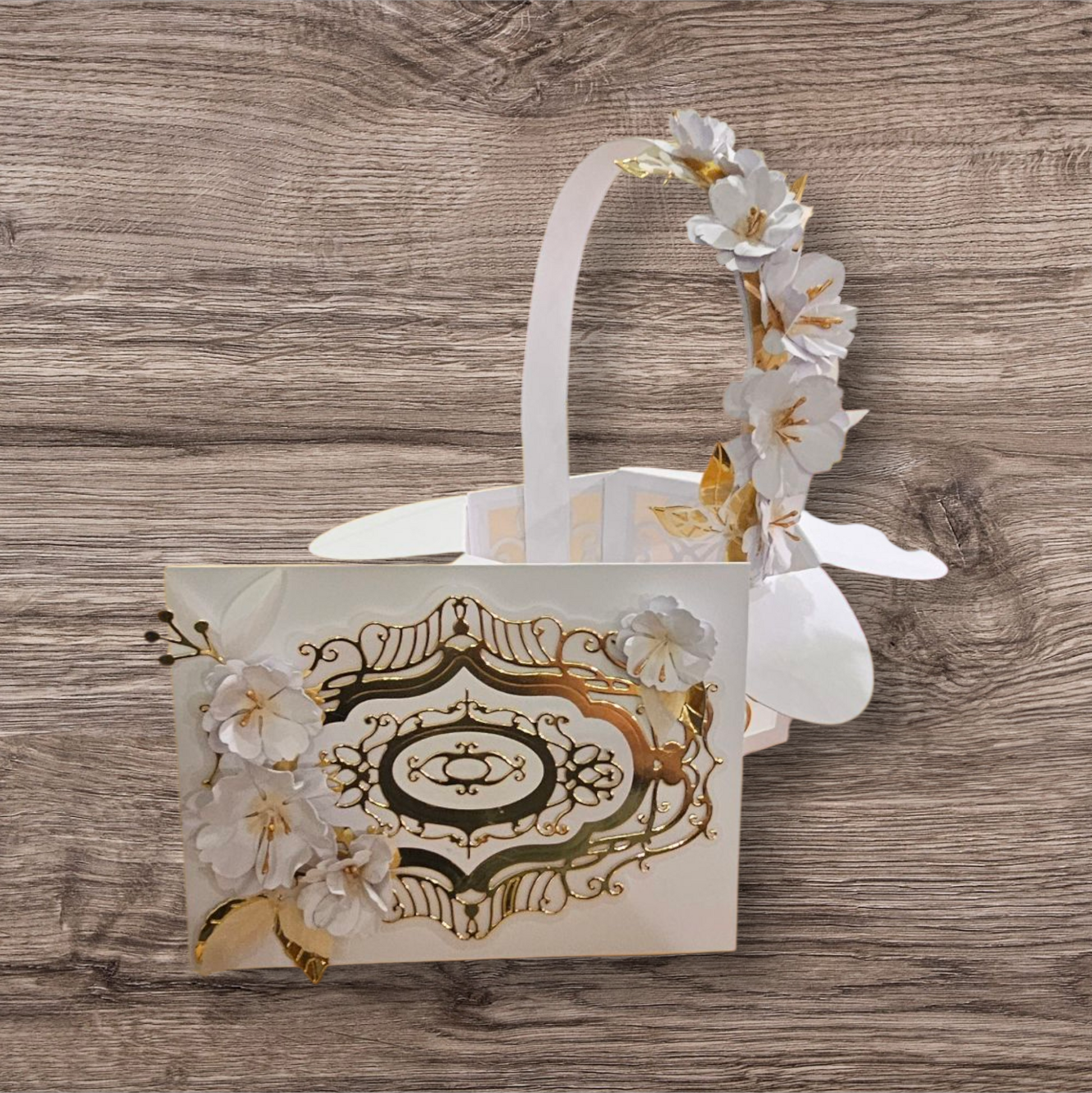 🌸 Construct and decorate a 3D basket, complete with floral embellishments and a stylish handle.
