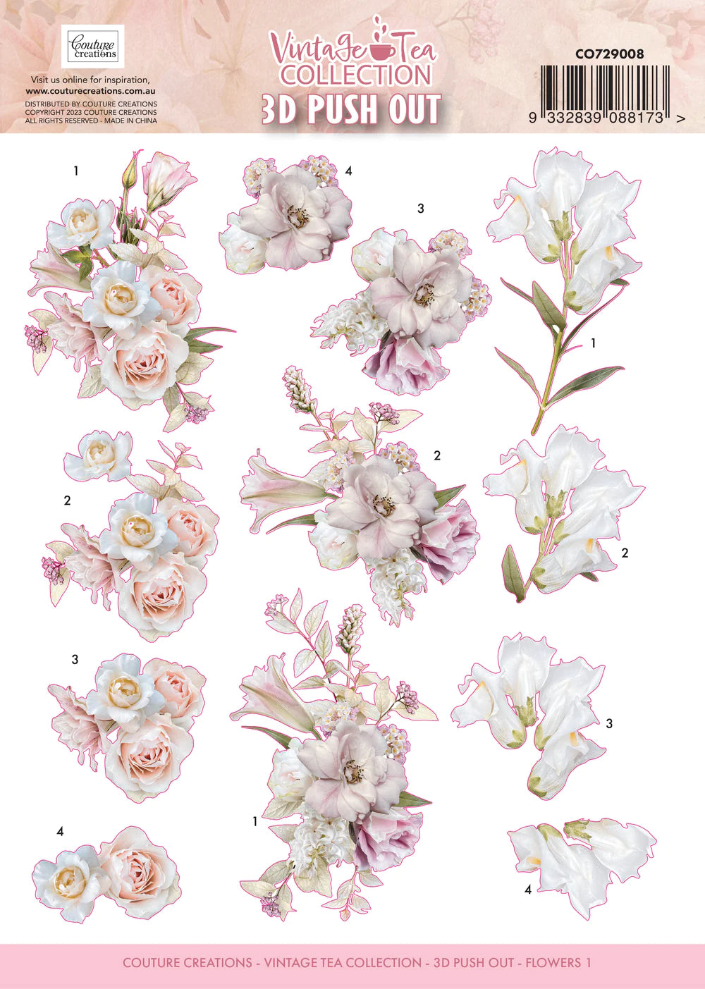 No scissors needed! This 3D pushout sheet contains the elements for three beautiful layered embellishments