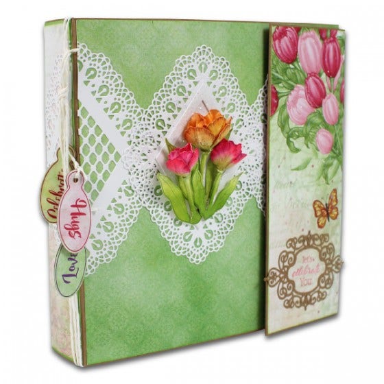 We recommend purchasing several packages of your favorite Heartfelt Creations designer paper collections to complete this album. The pre-made card panels, tags and decorative paper included in each paper collection allows for quick and easy decorating! We also recommend purchasing the complementing Adorn It Pocket Accents Die, Fanci-fold Pocket & Accents Die, Regal Pocket Accents Die, as well as the Regal Frame & Accents Die to add functional, yet decorative pocket accents ready to hold your favorite photos or keepsakes!
