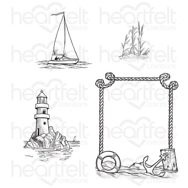 From masculine cards, to scrapbook layouts and heirloom albums of favorite beach vacations, the striking illustrations in the A Day at Sea Cling Stamp Set, when paired with the coordinating dies, become a wonderful way to add dimension and interest to all of your ocean themed projects! Stamp the seaside frame to display heartfelt sentiments on greeting cards, and create photo frames on seaside themed layouts!
