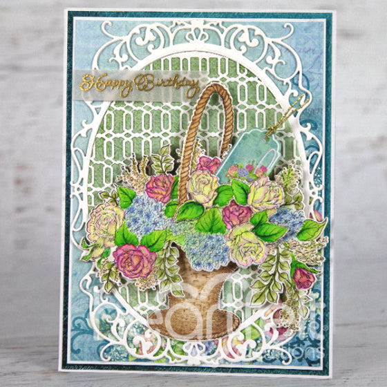 Have you been feeling bored with “basic” card making? Looking for a fresh new take on your floral cards? Go from basic to Wow with the Floral Basket Collection! Create stunning cards with the large floral basket and fill it with a beautiful floral display that will leave your friends awestruck! If you’ve been looking for a new way to create an elegant floral bouquet, look no further than the Floral Basket Collection! Regardless of your skill level, your cards will be bursting with florals and beauty, demanding the attention they deserve!
