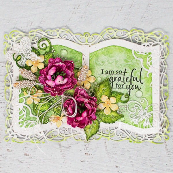Whether die cut and used alone to accent a favorite memory on a scrapbook layout, or paired with the coordinating Booklet Basics Die to create a sophisticated and charming booklet shaped card, the Booklet Frames Die is the ultimate assembling of nesting book frames ideal for adding interest and whimsy to all of your handmade paper craft creations! A wonderful collection of fairy tale like frames perfect for adding a touch of elegance to any project for any occasion!