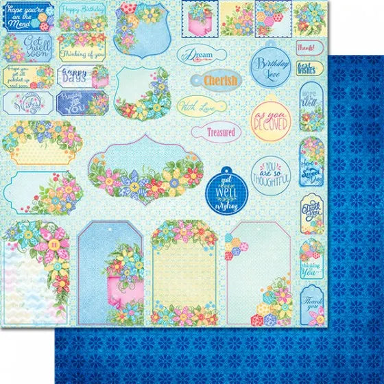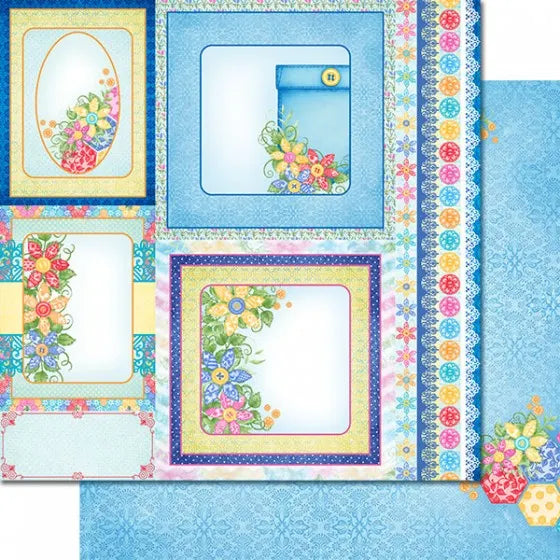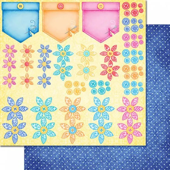 “Stitch” together the most beautiful projects with the Buttons and Blooms Paper Collection! This inviting assembling of papers has been bound in the most delightfully vibrant hues of bright blues, happy yellows, pretty pinks and robust reds, and is filled with alluring patterns of dainty florals, fun filled polka dots and quilt like patterns which will beckon you to caress them just as you would the beautiful bolts of material found in your favorite fabric store!