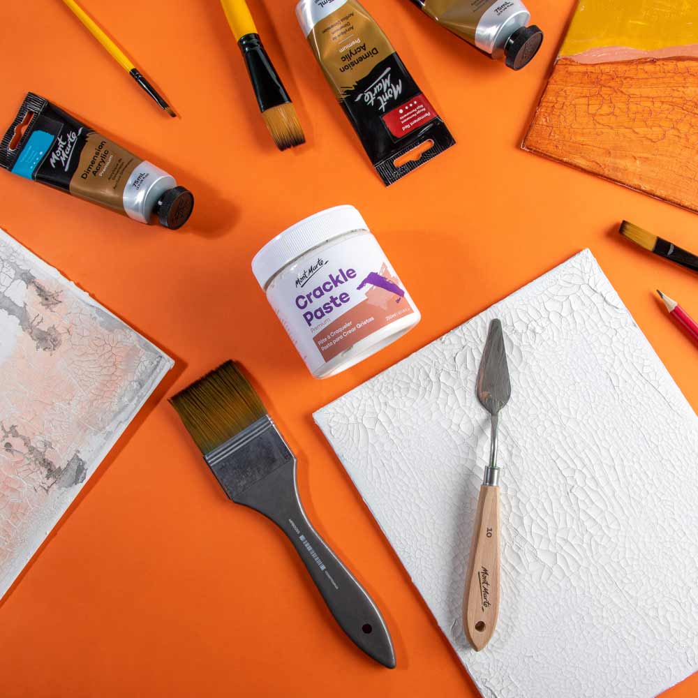 - For more cracks, apply a thin coat of acrylic paint to surface first to allow paste to sit on a surface that moves underneath the paste (allowing for more cracks)