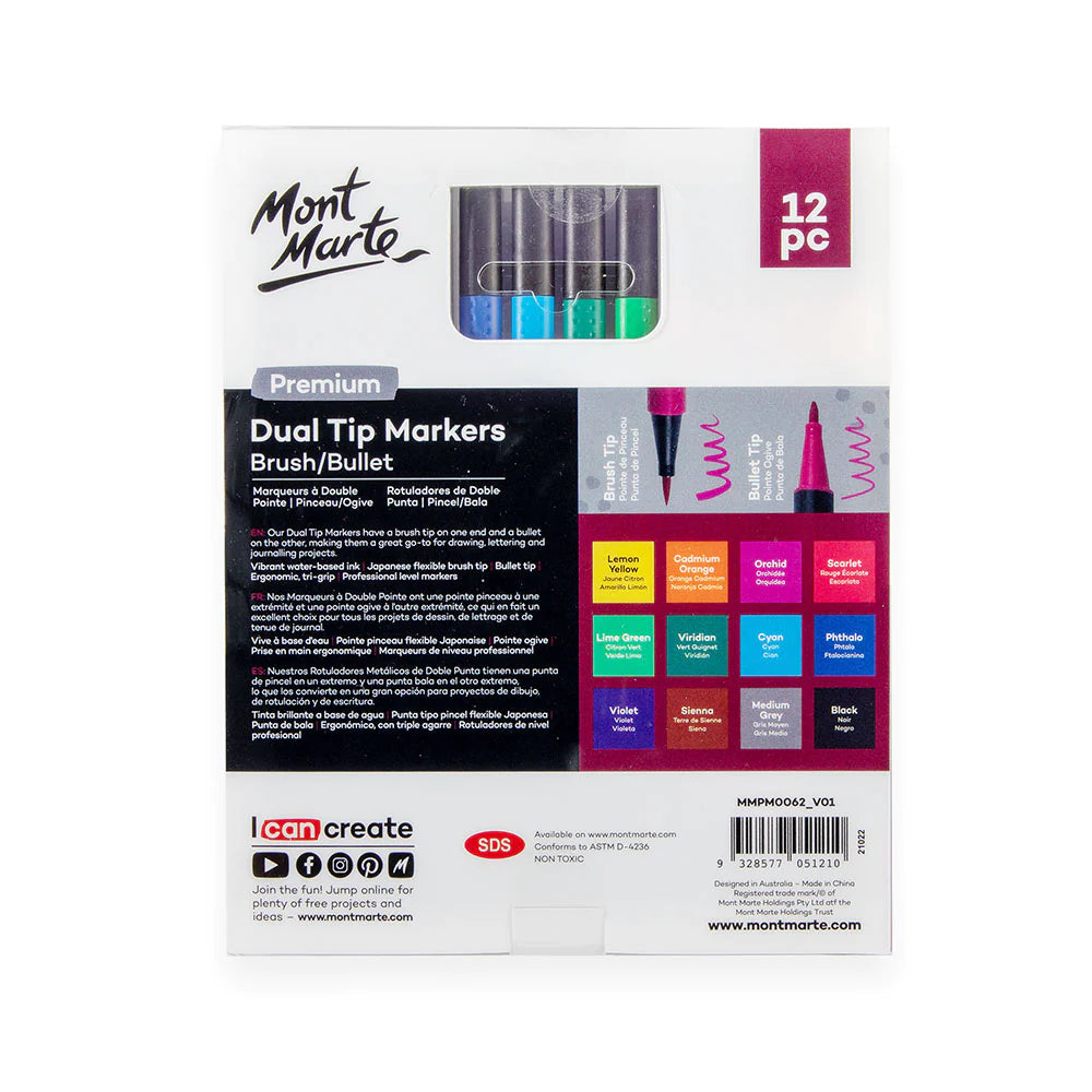 Dual Tip Markers Brush/Bullet Premium 12pc