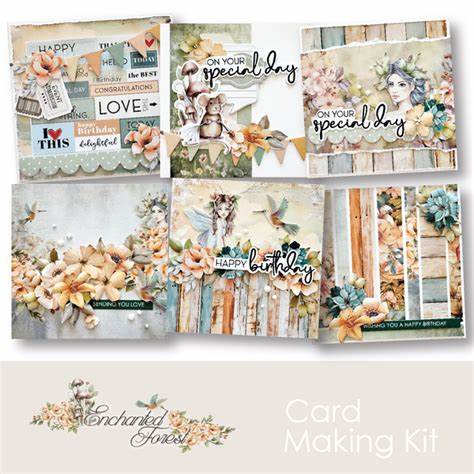 Everything you need to make 6 cards with envelopes and there will be lots of left overs to make many more, all you need extra is glue and scissors :). The Kits come with full size colour images of the cards to make