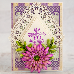 Create perfectly sized decorative diamond die cuts for handmade greeting cards, scrapbook layouts, heirloom albums or altered art pieces with the Eyelet Diamond Die. Six sizes of ascending dies layer together to create the ideal diamond look, in the precise size, for any of your paper crafting projects, with each die displaying a delicate decorative eyelet edge. We recommend pairing this die together with the Diamond Basics Die to create endless diamond shaped embellishments!