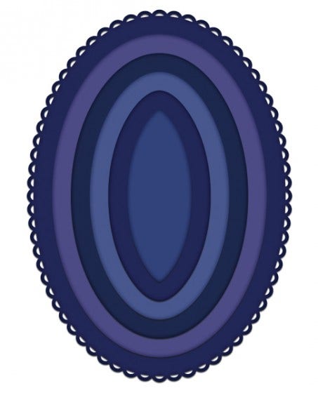 Perfect for creating oval cut window openings in card fronts or as decorative embellishments in scrapbook layouts, the Eyelet Oval Basics Large Die will ensure a flawless oval for any of your paper creations each and every time! Six sizes of ascending dies layer together to create the ideal look in the precise size for any of your paper crafting projects, with the largest die displaying a delicate decorative eyelet edge! Exclusively designed to coordinate and use in conjunction with the Layered Ovals Card ensuring that designing and assembly come together quickly and with ease! Also ideal to pair together with the Eyelet Oval and Basics Small Die to have an endless combination of oval die cut sizes!