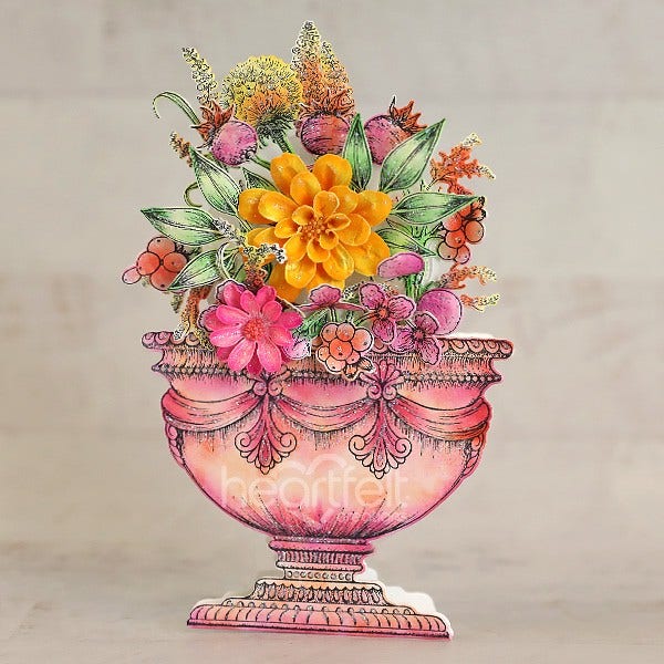 Have you been feeling bored with “basic” card making? Looking for a fresh new take on your floral cards? Go from basic to Wow with the New Floral Shoppe Collection! Create stunning shaped cards with the Large Floral Urn, and fill it with a beautiful floral display that will leave your friends awestruck! If you’ve been looking for a new way to create an elegant floral bouquet, look no further than the Floral Shoppe! Regardless of your skill level, your shaped cards will be bursting with florals and beauty, demanding the attention they deserve!