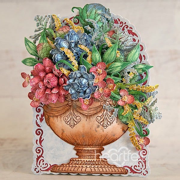 Have you been feeling bored with “basic” card making? Looking for a fresh new take on your floral cards? Go from basic to Wow with the New Floral Shoppe Collection! Create stunning shaped cards with the Large Floral Urn, and fill it with a beautiful floral display that will leave your friends awestruck! If you’ve been looking for a new way to create an elegant floral bouquet, look no further than the Floral Shoppe! Regardless of your skill level, your shaped cards will be bursting with florals and beauty, demanding the attention they deserve!