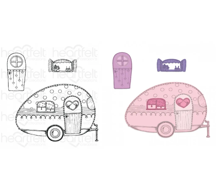 Send those well wishes rolling down the road to friends and loved ones, using the fun and whimsical Happy Camper Cling Stamp Set! Substantially sized, and ideal for creating adorable camper shaped note cards or summer party invitations, this jovial cling stamp set is sure to bring a smile to the young and the young at heart. When paired with the coordinating die, assembling several different dimensional looks for this adorable recreational vehicle is easily achieved simply through switching out door or window die cut illustrations!