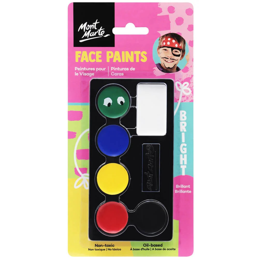 Mont Marte Kids Face Paint Sets offer a safe and convenient selection of colours, ideal for children's parties or just having plain fun. Experiment and be inspired by your imagination - fairies, dragons, your favourite sporting team - you name it, you can create it. Remove with oil-based cleanser or makeup remover.