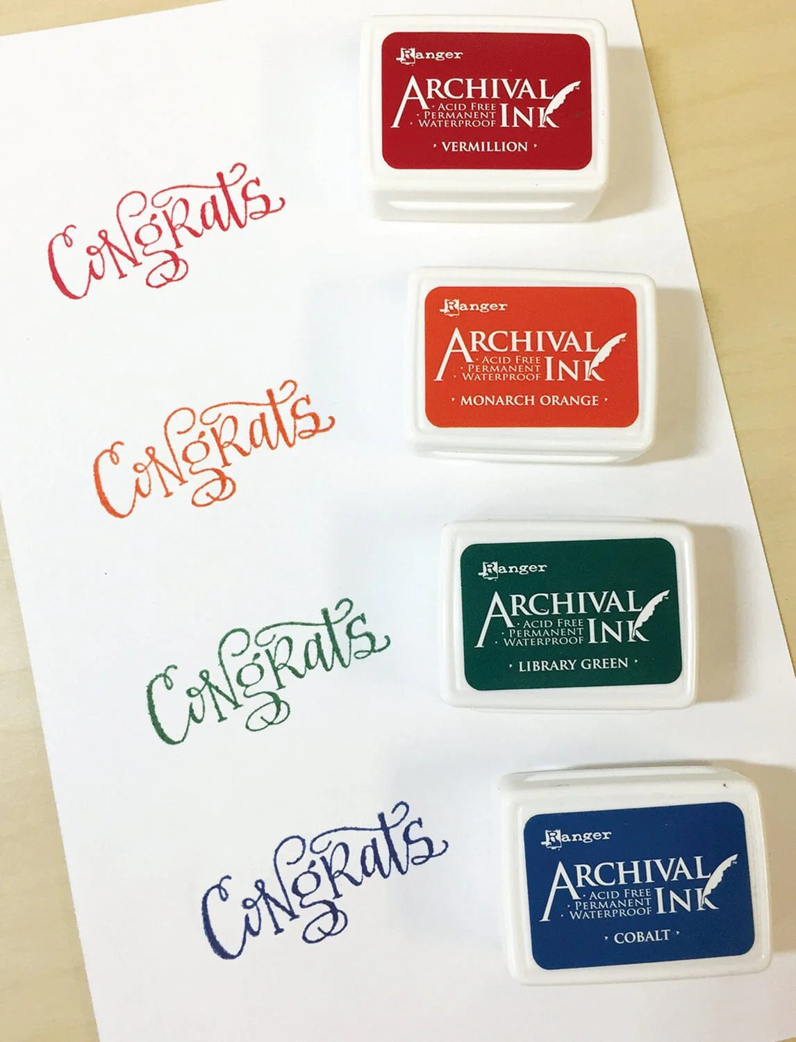 Ranger Mini Archival Ink Pads are the same unique, fade resistant dye ink formula as full size Archival Ink Pads, but in a convenient mini pad. Archival Inks provide long lasting stamping results that are permanent on many surfaces. Get a crisp image that doesn't bleed over water based inks, markers, acrylic paint, watercolors, and more. Pads can be easily re-inked with the coordinating Archival Ink Re-inker. The small size makes these pads quite convenient for projects on the go!