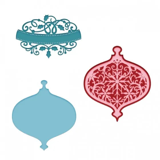Perfectly sized to create that special ornament shaped card base, to accent scrapbook layouts, or even as beautiful die cut decorations for your Christmas tree, the Noel Ornament Die is an excellent add on to your seasonal die collection! Create a multitude of ornamental looks from the most simple to more intricate through layering the various inlays, accenting with one of the coordinating sentiments from the Noel Sentiments Cling Stamp Set, or opting to combine with one of the stamped and die cut images from within the O Holy Night Collection!