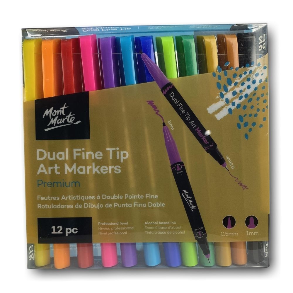 Mont Marte Premium Marker Set - Dual Fine Tip Alcohol Ink Art Markers 12pc