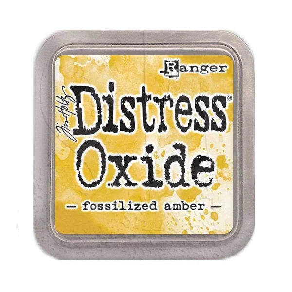 Tim Holtz Distress Oxide Ink Pad - Fossilized Amber - Water-reactive and pigment ink fusion that creates an oxidized effect when sprayed with water. Use with stamps, stencils, and direct to surfaces. Blend using Ink Blending Tools and Foam. Ink pads are 3x3 inches.