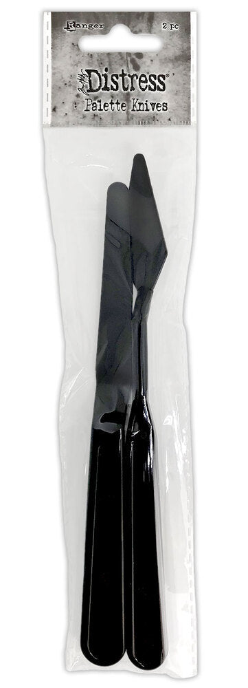 Tim Holtz Distress® Palette Knives are the perfect tools for mixing and applying all types of Distress® mediums, including paint, texture pastes, grit-pastes, collage medium, and more. Made of easy to clean, durable plastic, the Distress® Palette Knives are ideal for creating various textures and painting techniques. Set includes 2 palette knives, one Straight Knife and one Offset Trowel.