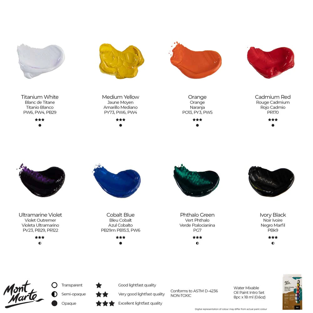 Water Mixable Oil Paint Intro Set Premium 8pc x 18ml (0.6 US fl.oz)