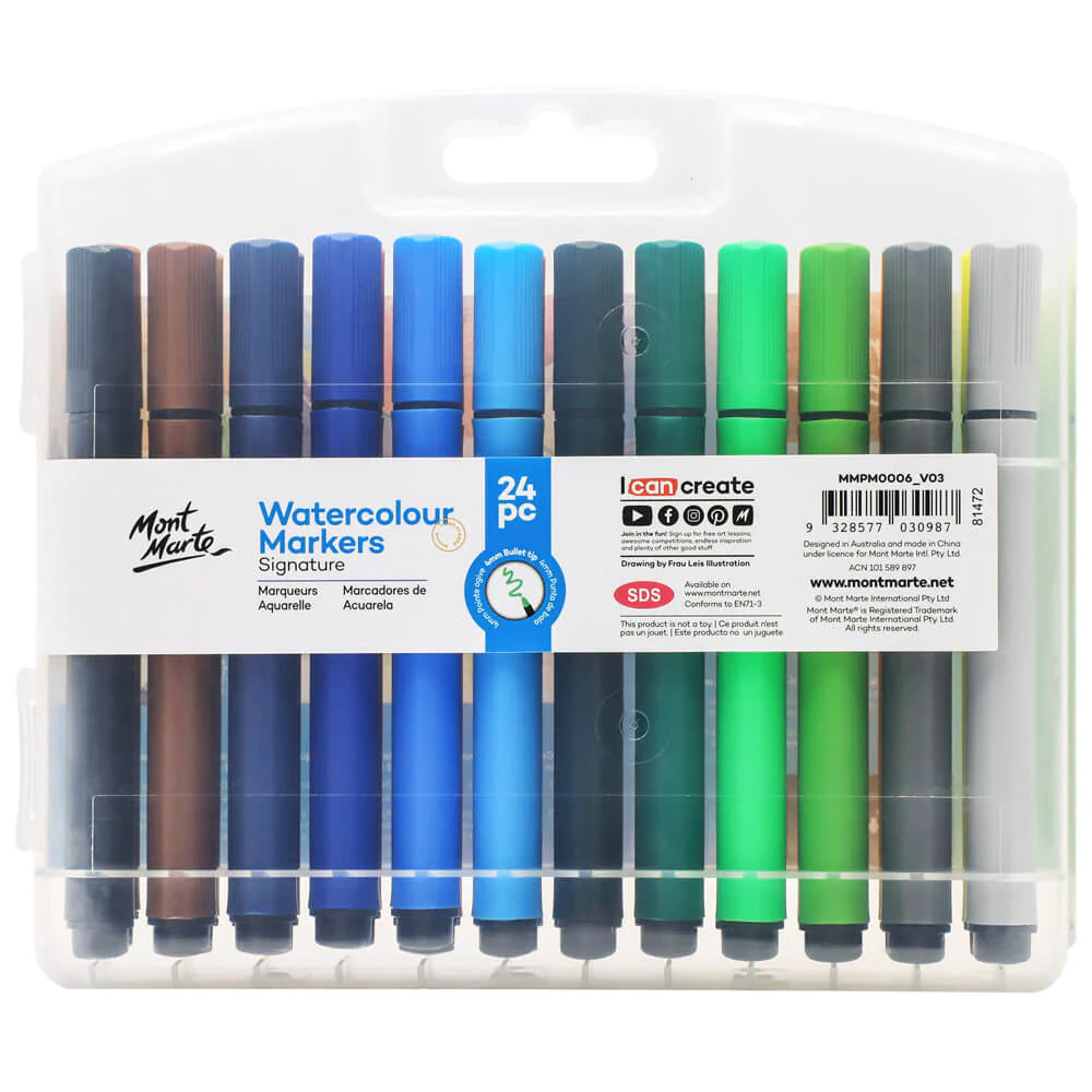 Mont Marte Colour Markers come in 24 vibrant colours. With a'tri-grip' structure they are comfortable and easy to hold. The nib is 4mm thick with fast flowing and quick drying ink. Great for all art projects, design work and crafty fun.