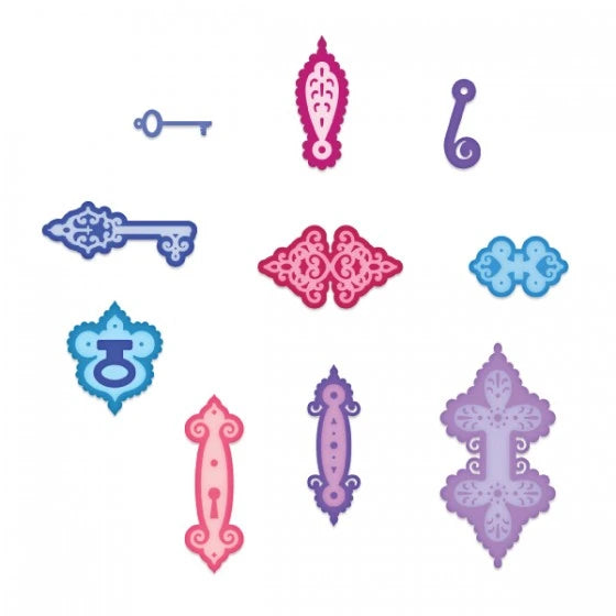 Designed to allow for quick and easy decorating of Circle Card Bases, or as embellishment accents for use on any paper crafting project, the versatile Window Hinges Die creates a multitude of designing opportunities with consistent and elegant results each and every time! This decorative die is part of the Decorative Circle Cards, Dies and Papers Collection, and pairs with the coordinating Circle Fold Card Bases and Window Scenes Paper Collection!
